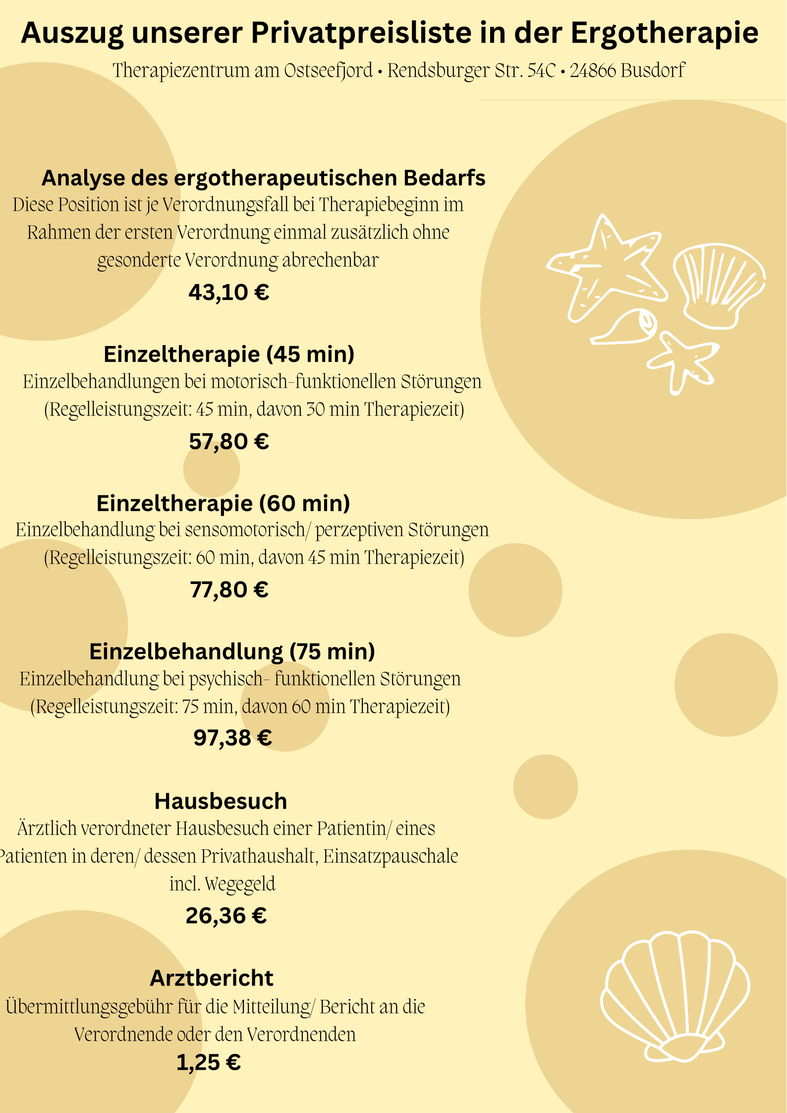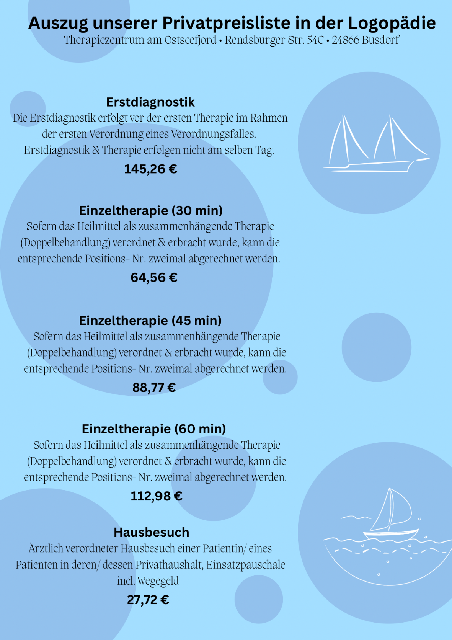 Wir bitten Sie um Verständnis dafür, dass wir uns in der Preiskalkulation für Patientinnen & Patienten, welche nicht der gesetzlichen Krankenversicherung zugehörig sind, nicht zwangsläufig den Gebührensatz der gesetzlichen Krankenkassen für unsere Leistungen einordnen. Als Heilmittelpraxis sind wir als Unternehmen nicht staatlich gefördert oder bezuschusst und existieren nicht als Teil des öffentlichen Gesundheitswesens (im Gegensatz zu anderen Institutionen & Einrichtungen in der Gesundheitsbranche). Als Einzelunternehmen haben wir die Freiheit und die Notwendigkeit unsere Preise so zu kalkulieren, dass diese mit unseren Aufwendungen, Investitionen & Kosten für die Behandlungseinheiten im Einklang stehen. So ist es möglich, dass sich Preise (über)regional voneinander unterscheiden und nicht zwangsläufig deckungsgleich sind. Mehr Informationen entnehmen Sie gerne dem Flyer Patienten- Information zur GebüTh – Gebührenübersicht für Therapeuten oder sprechen uns persönlich an.